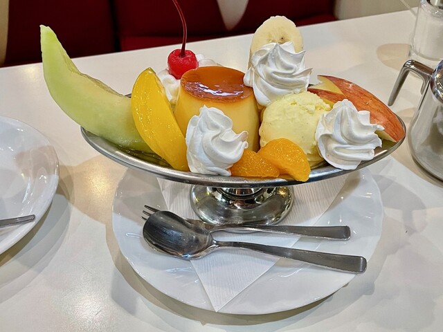 一番人気のメニューは昭和を感じさせるプリンアラモードで、昭和生まれの方は「懐かしい!」と感じるはず。
