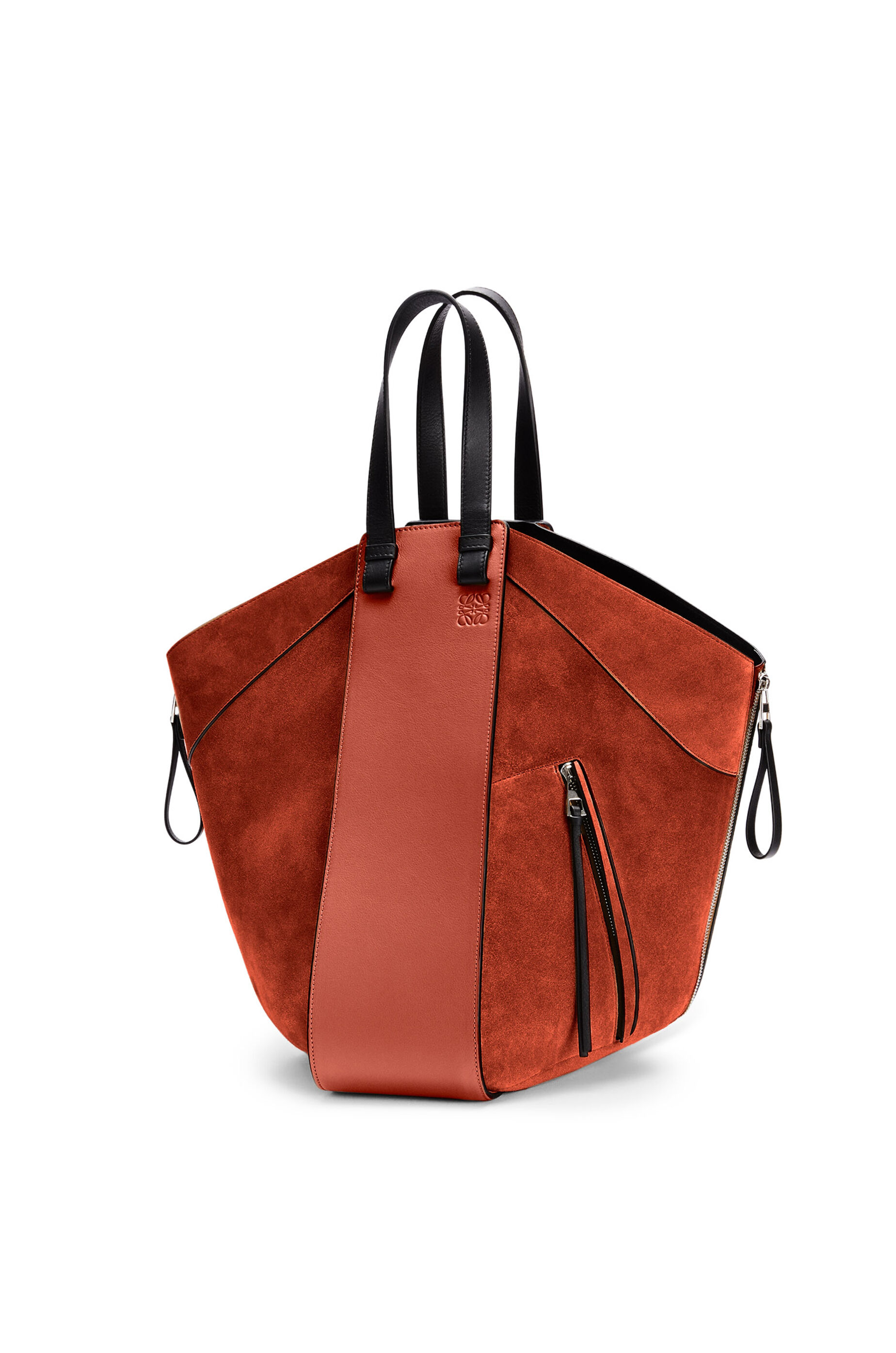 カーフスキンとスエードがあしらわれたハンモックトートはロエベの定番とも言えますが、秋色の美しいカラーが展開されました。大容量なので仕事にはもちろん、物が少ないときはコンパクトに形を変えられるのもいいですね。