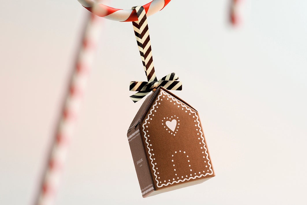 ジンジャーブレッドハウスにインスパイアされたパッケージは、インテリアのひとつとしても楽しみたいもの!